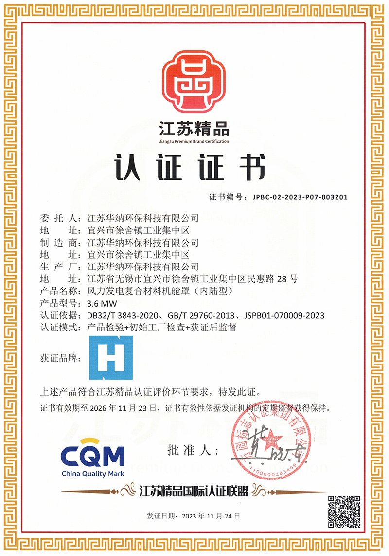 江蘇華納環(huán)保科技有限公司座落于全國環(huán)保產業之鄉-江蘇省宜興市,地處滬、寧、杭等距離的中心地帶,交通便利。注冊資本7066.66萬人民幣,公司主要是從事玻璃鋼復合材料、環(huán)保設備的設計、開發(fā)、制造、銷售于一體的科技型企業,是國家高新技術企業,國家專精特新小巨人企業,主要產品風力發(fā)電機艙罩、導流罩,廢氣廢水處理環(huán)保設備。
